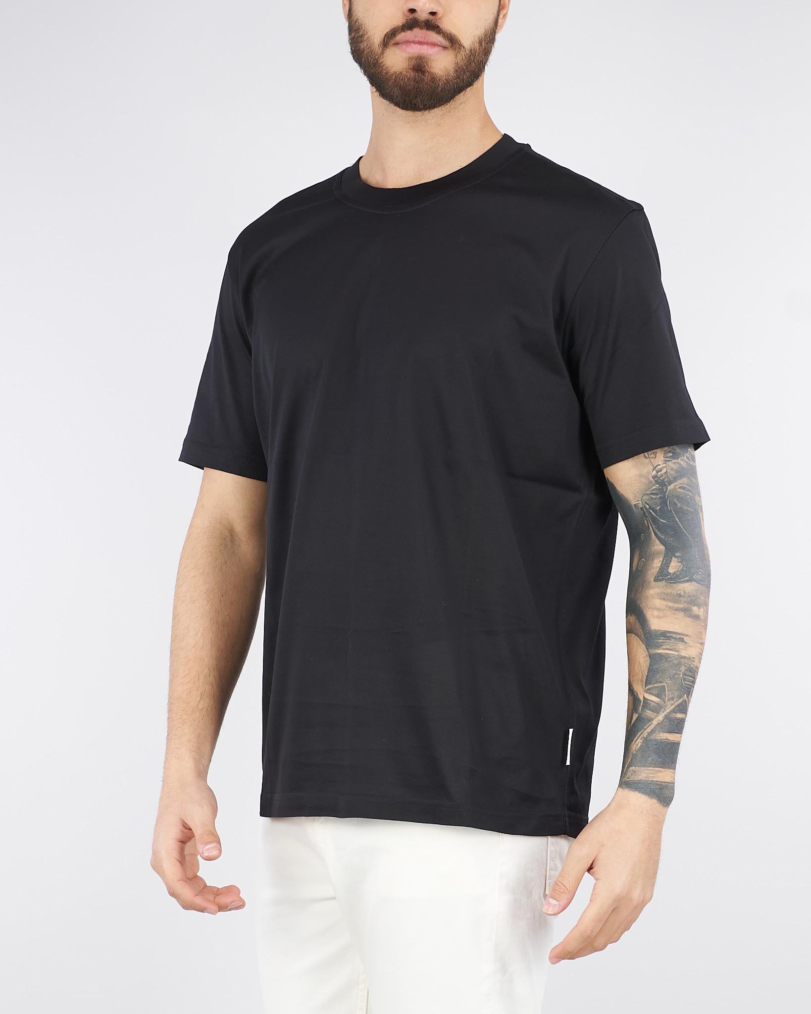 T-shirt basic in jersey lucido di Poalo Pecora. Modello girocollo con maniche corte. Regular fit.