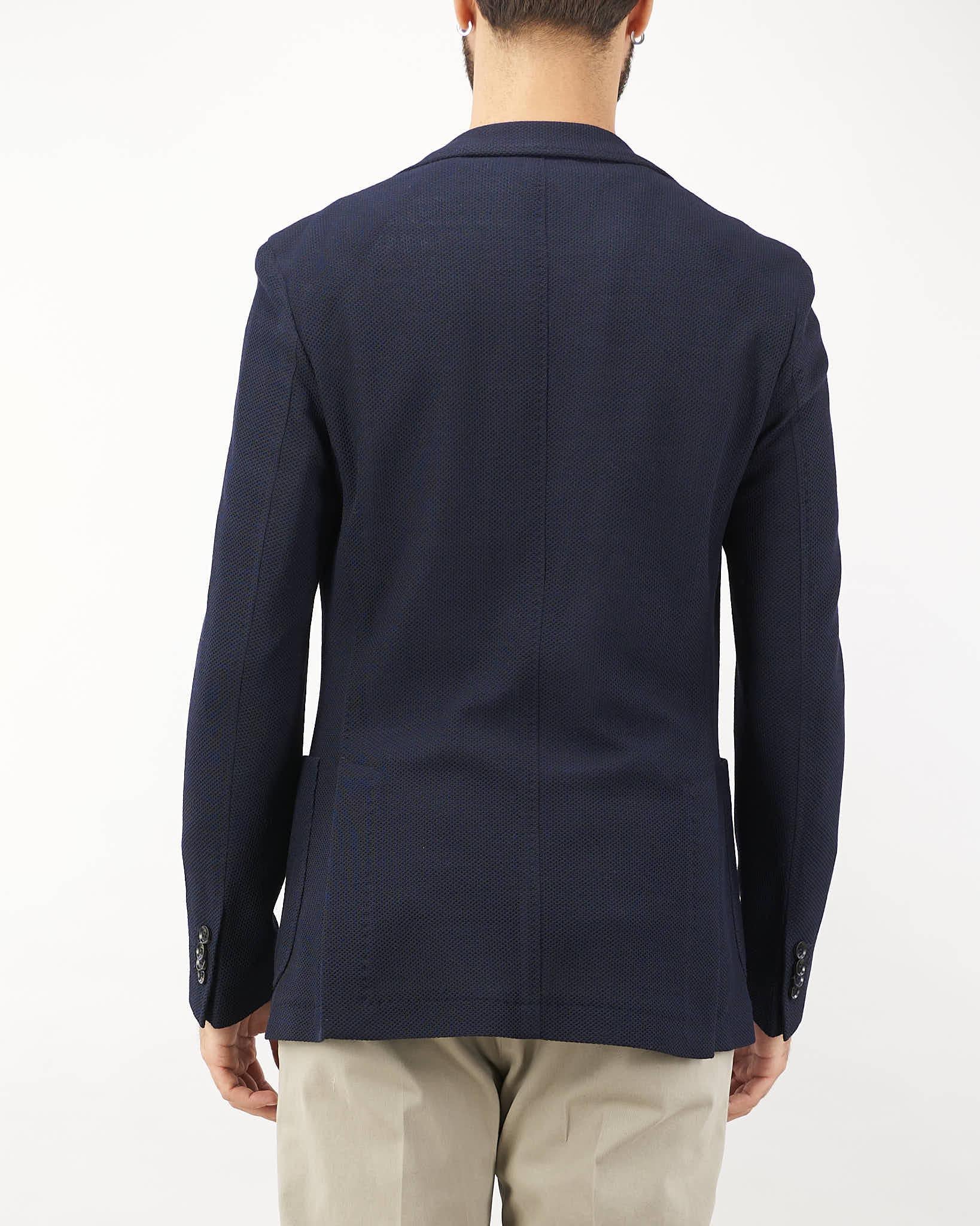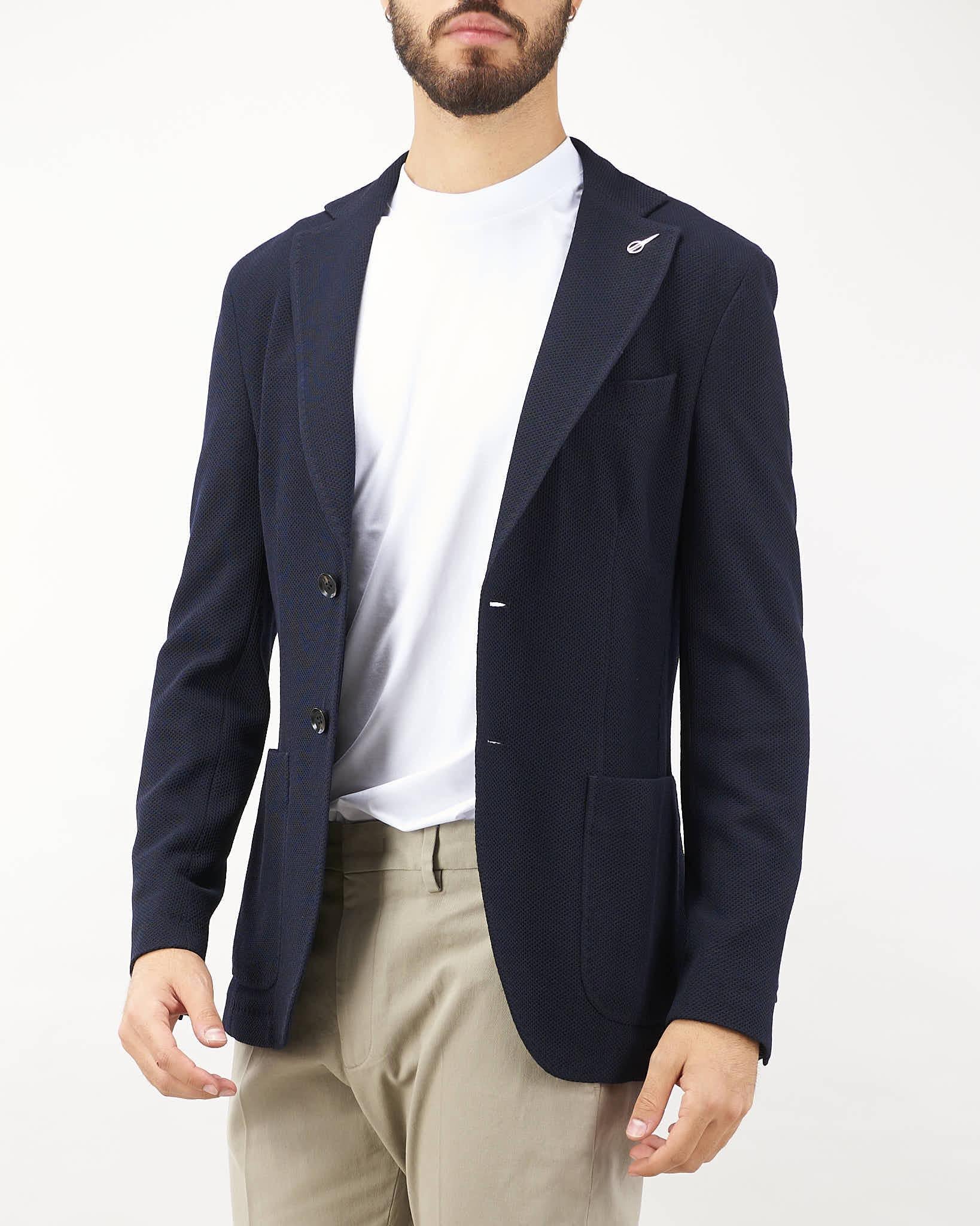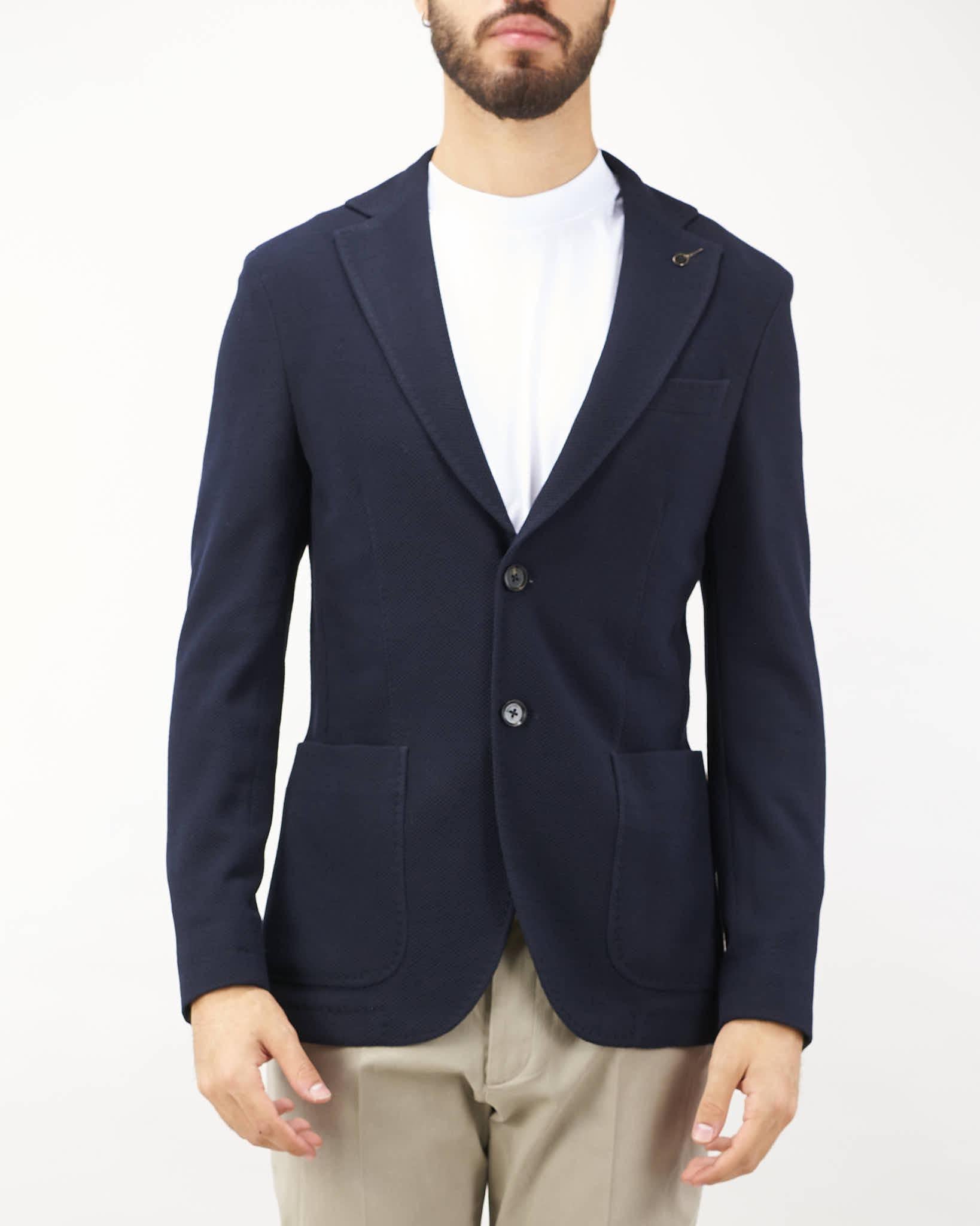Giacca in misto lana di Paoloni. Modello monopetto con rever, tasche a toppa sul davanti e taschino sul petto. Doppio spacco sul retro. Chiusura centrale con due bottoni. Spilla iconica sul rever.