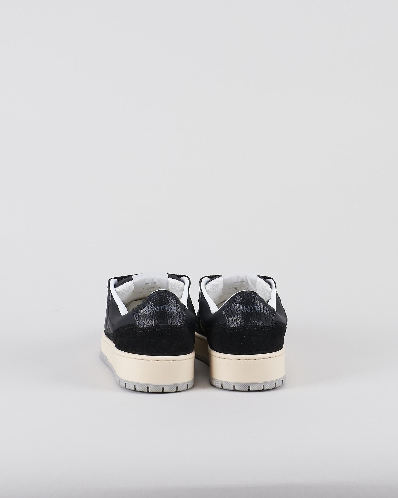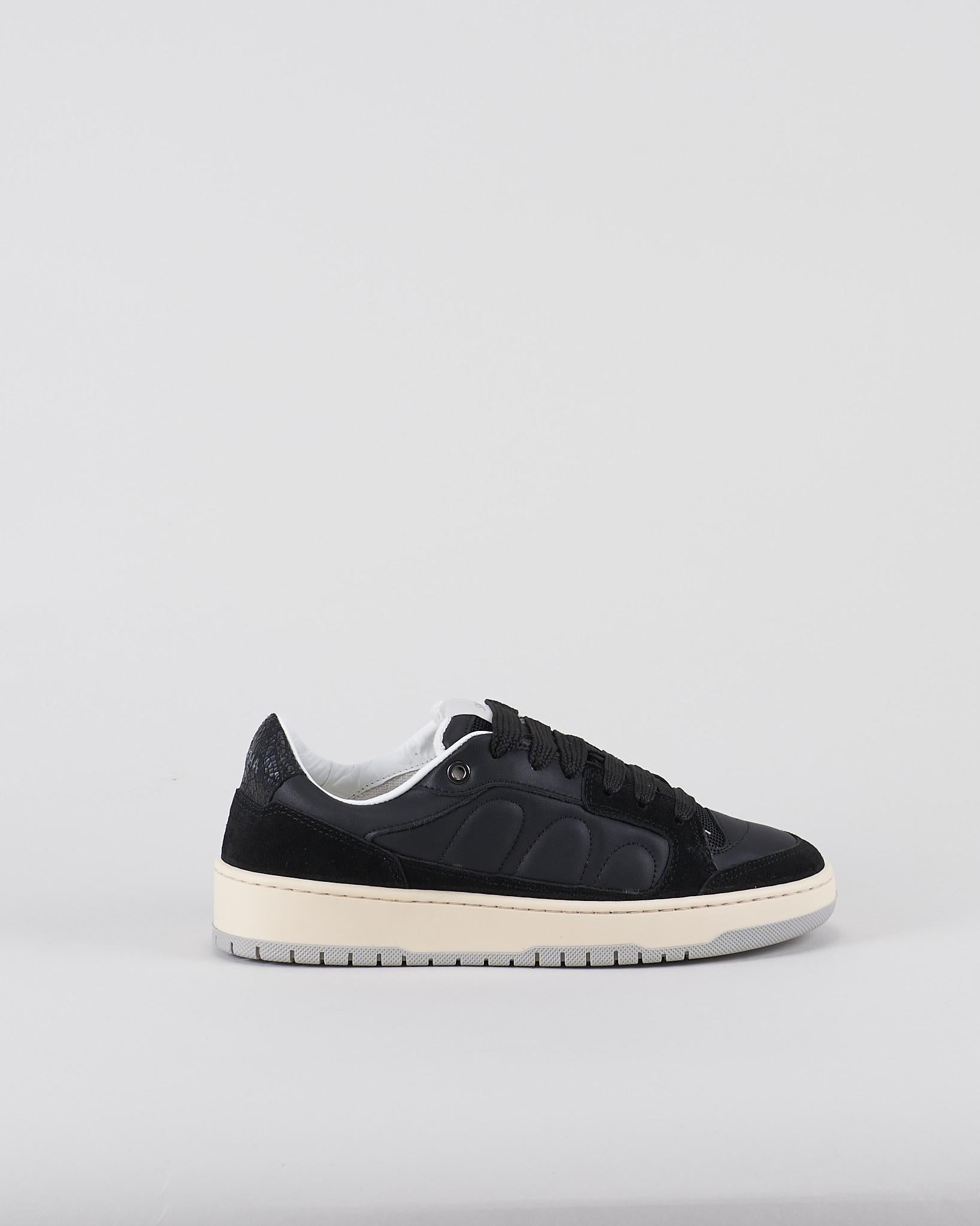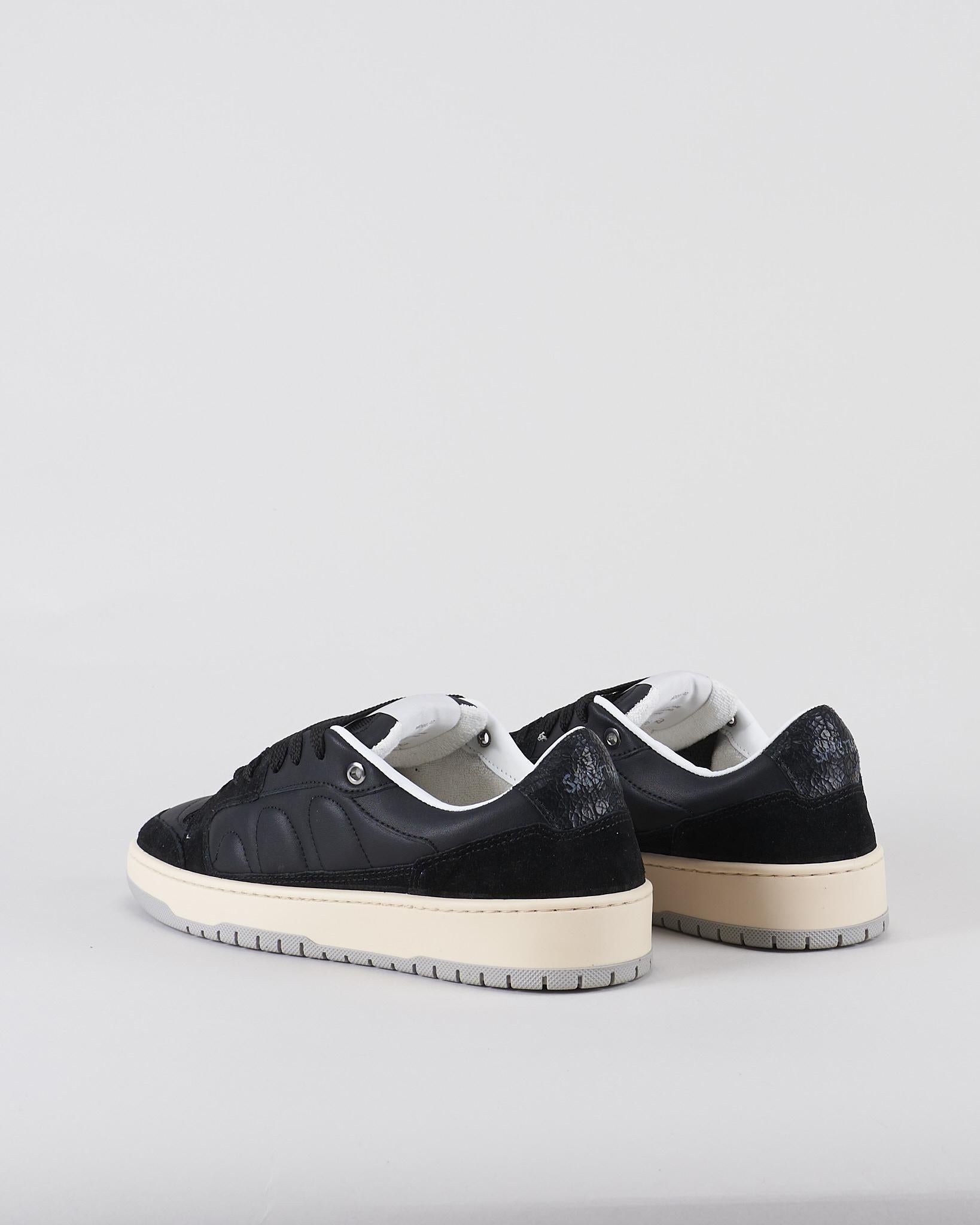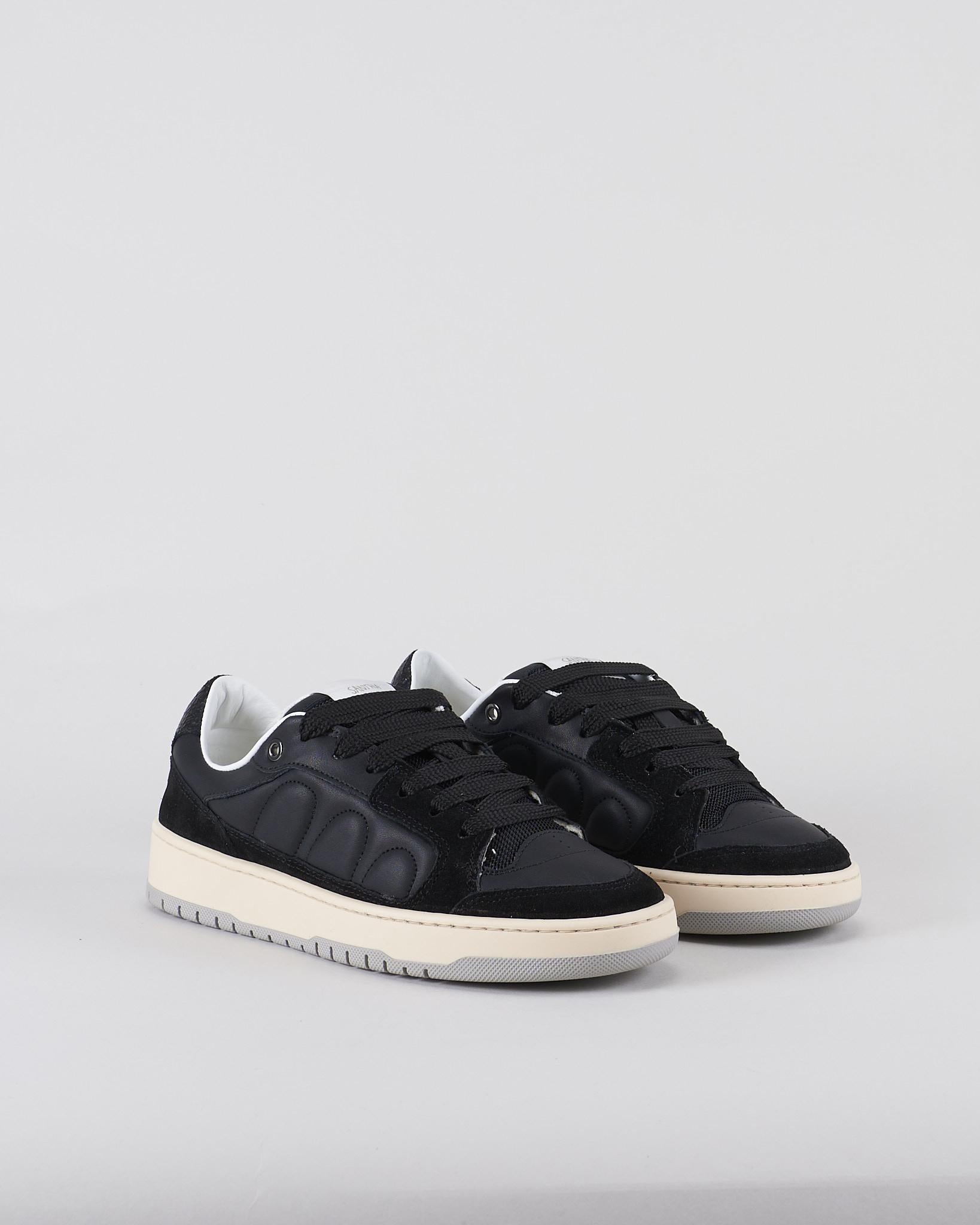 Sneakers Santha x Paura. Tomaia in pelle e impunture a vista. Sovrapposizioni in suede in tono. Maxi allacciatura sul fronte. Linguetta imbottita con label logata "Santha Not For Skate" cucita. Collarino imbottito e talloncino rinforzato con logo stampato sul retro. Interno in spugna di cotone e soletta rialzata in pelle. Suola cucita in gomma.
