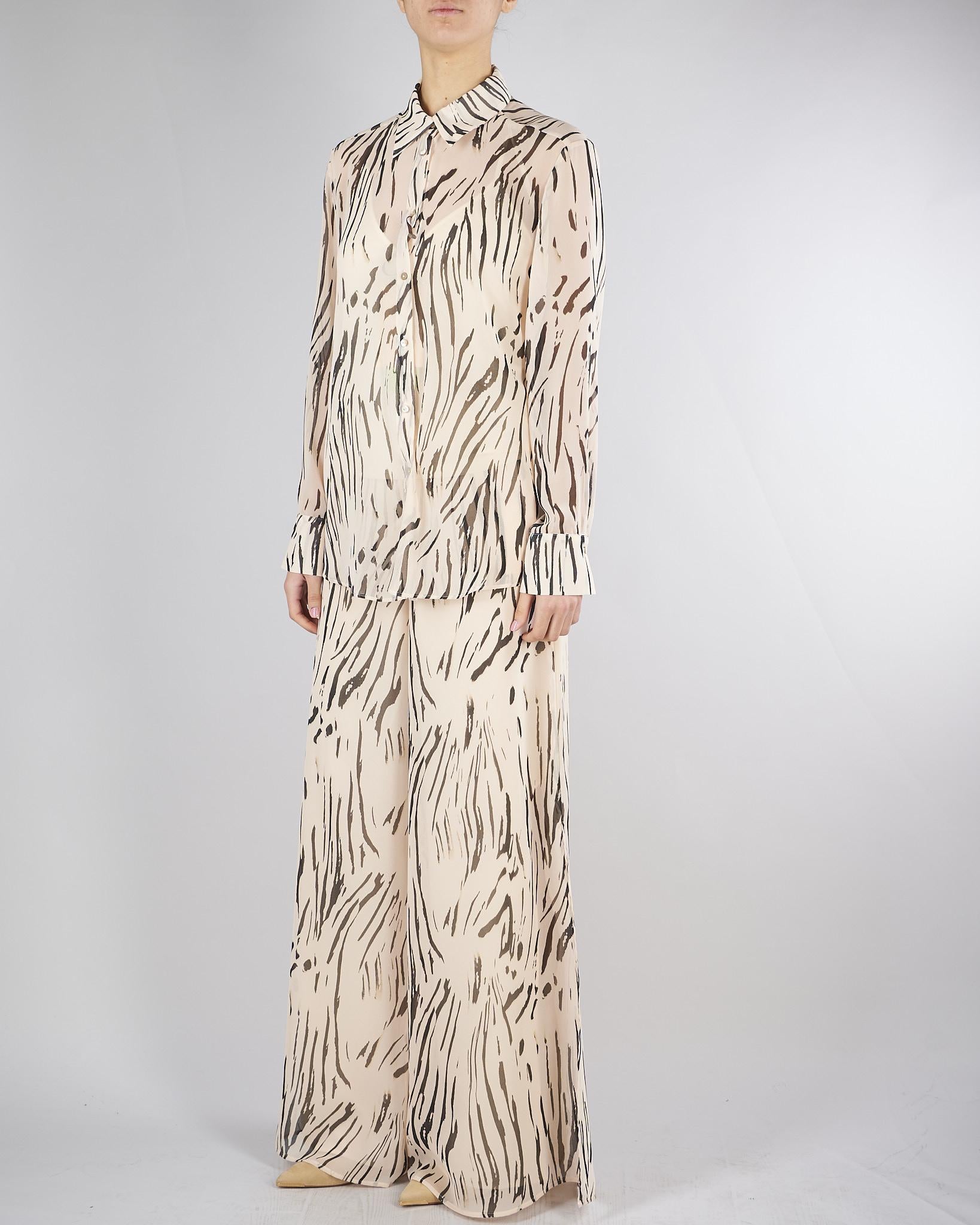 Con un taglio morbido in georgette semitrasparente, questa camicia rielabora la fantasia in una moderna versione grafica. Colletto classico, maniche lunghe, polsi con bottone. Orlo leggermente arrotondato. Capo completo di top anti-trasparenza in jersey. Fit regolare.