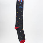 Calze lunghe da uomo realizzate in Italia in cotone. Molto morbide al tatto, create per una persona dinamica che non rinuncia ad un dettaglio di stile. La divertente fantasia ''Happy Birthday'' le rende originali ma riconoscibili. Si adattano ad un look casual, stravagante o anche formale.