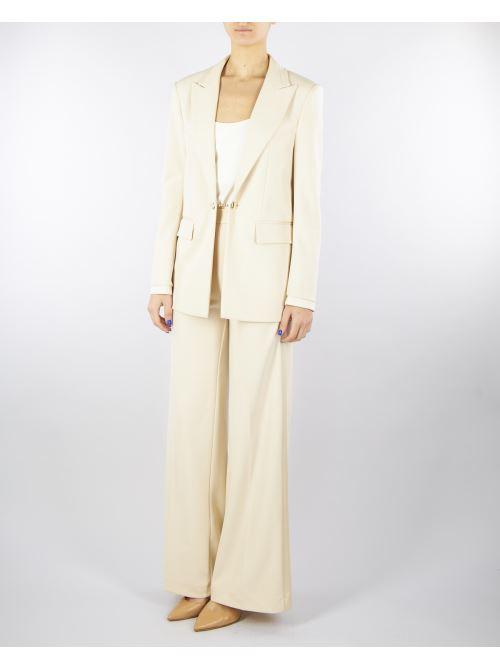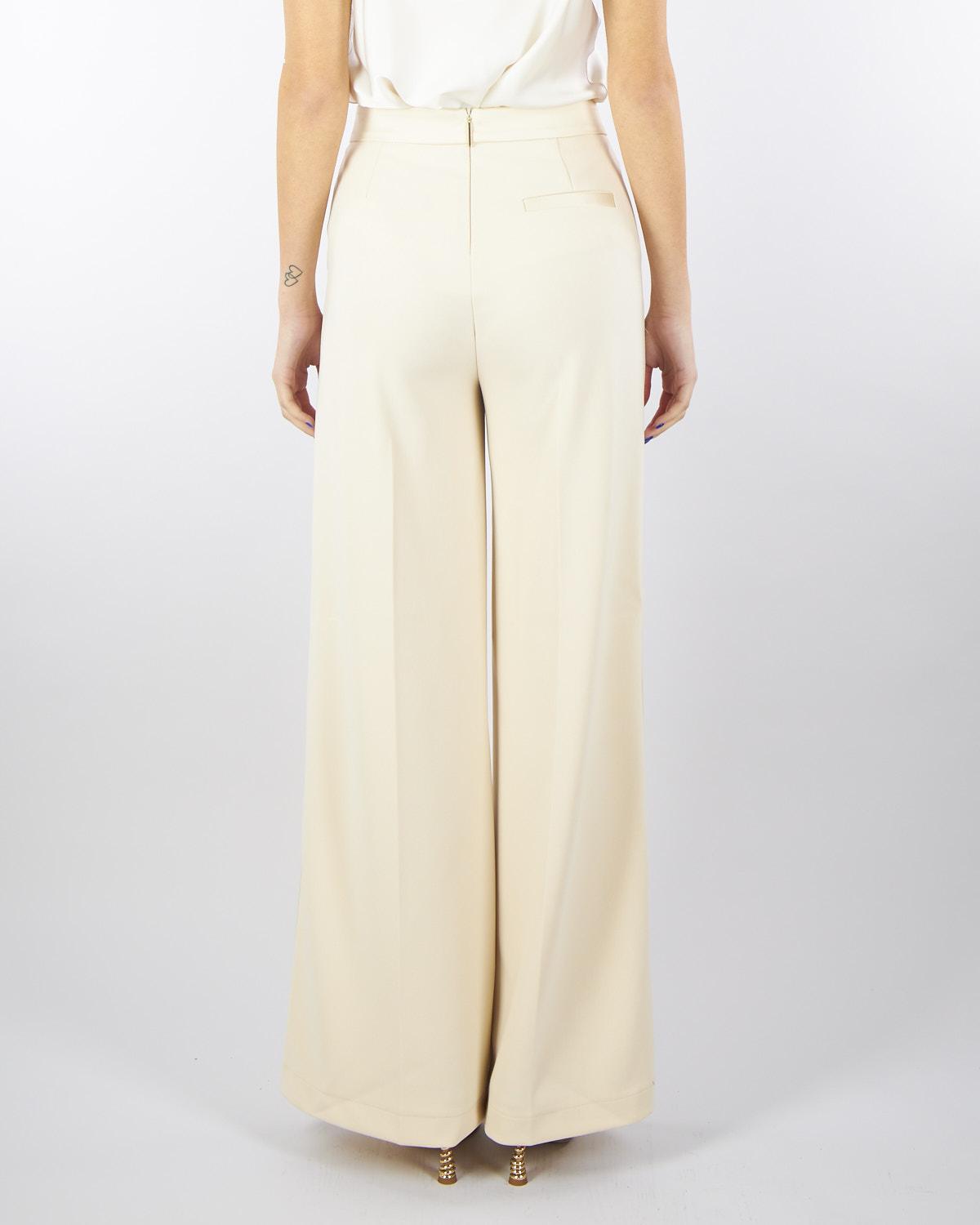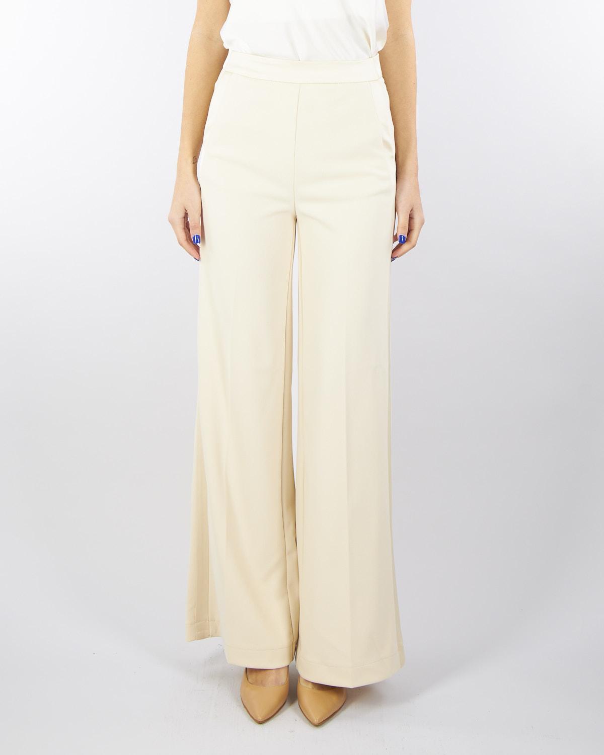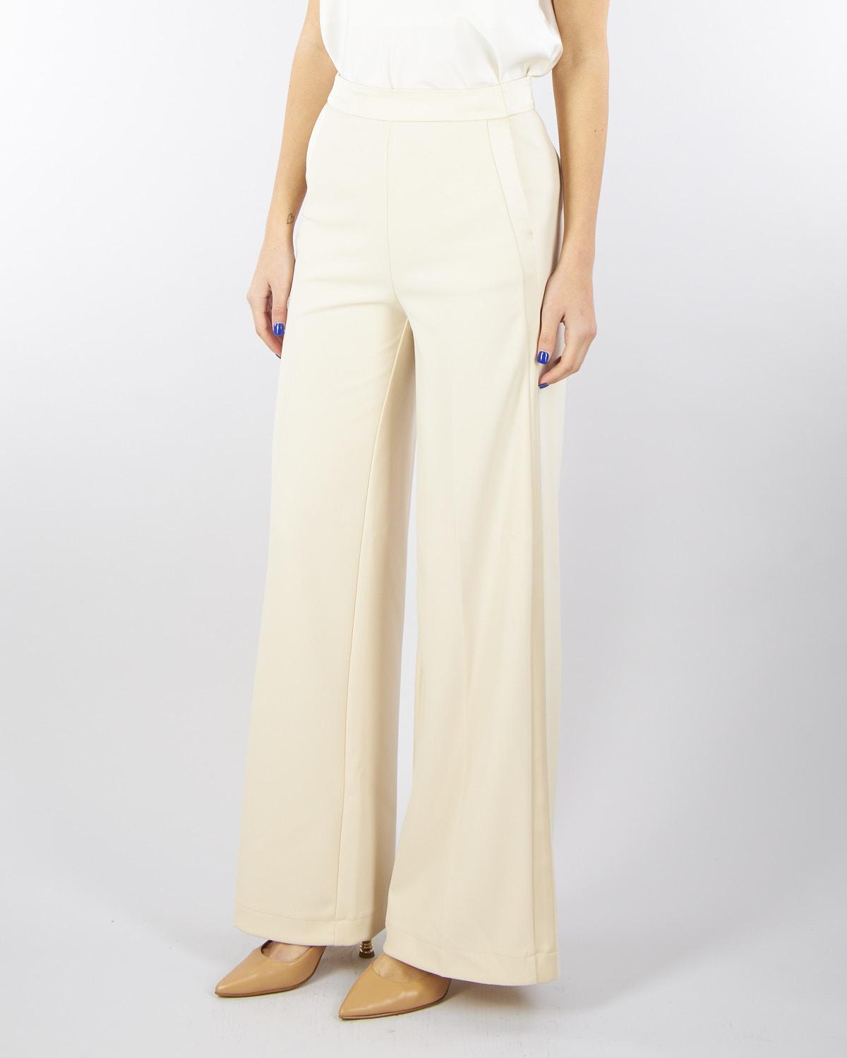 Completa il tuo outfit elegante con questi pantaloni palazzo dal taglio sartoriale con piega centrale, con vita alta e tasche laterali profilate, chiusura zip.