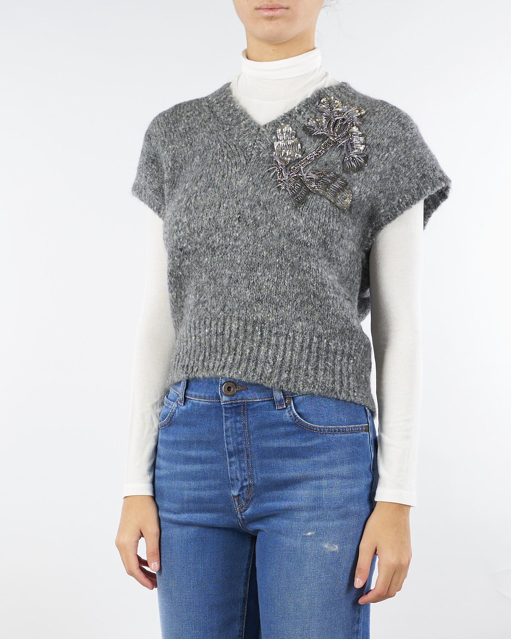 Maglia Gilet Grigio in misto mohair con applicazioni