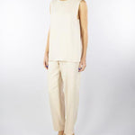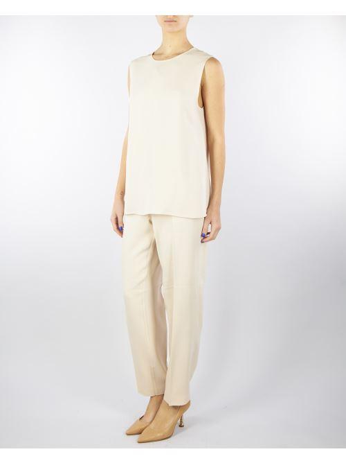 Pantalone in viscosa di Seventy. Modello con gamba dritta, vita alta con elastico. Tasche laterali. Chiusura con gancio.
