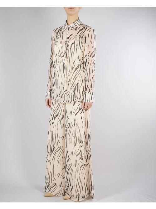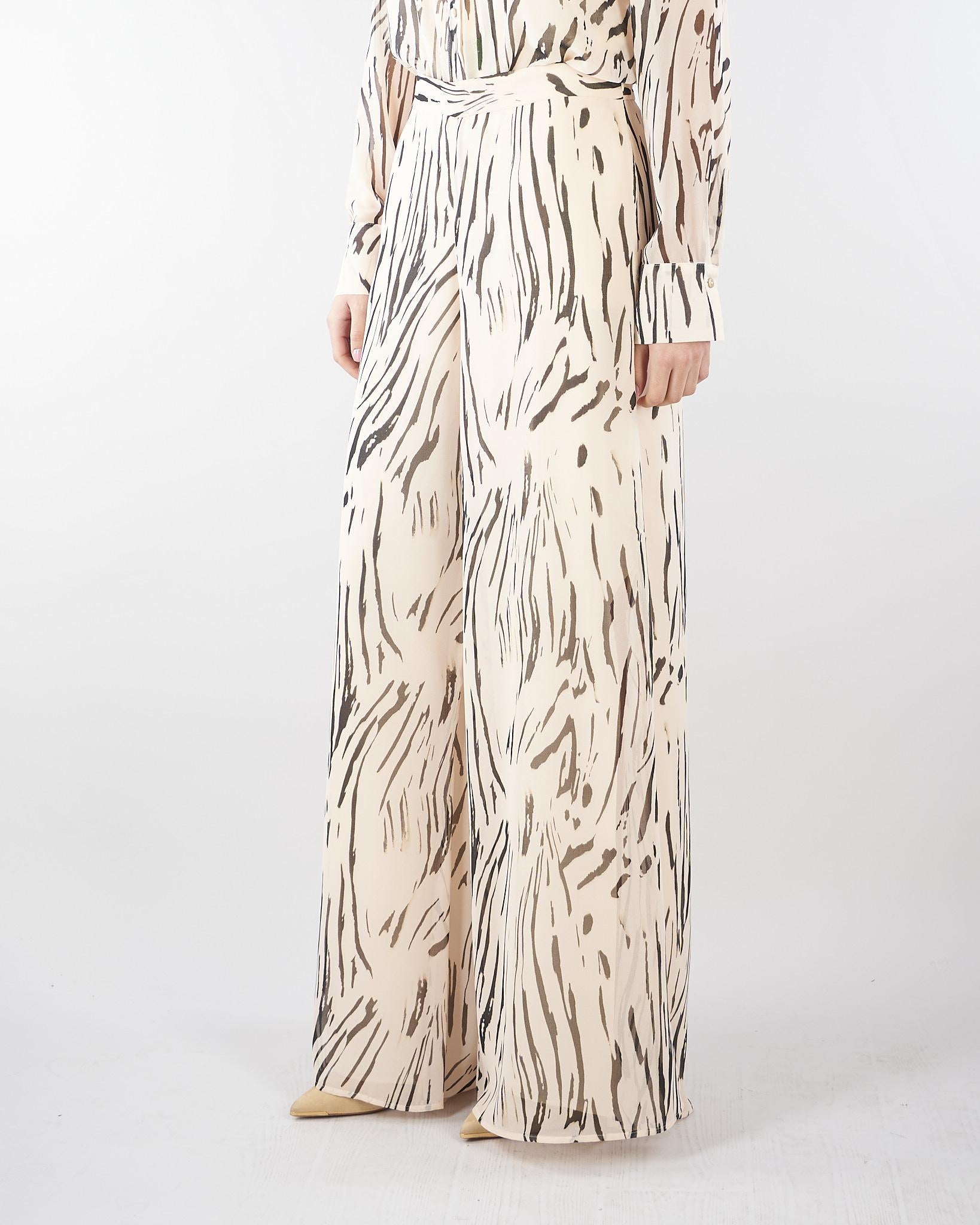 Pantaloni Crema-Nero in georgette stampata