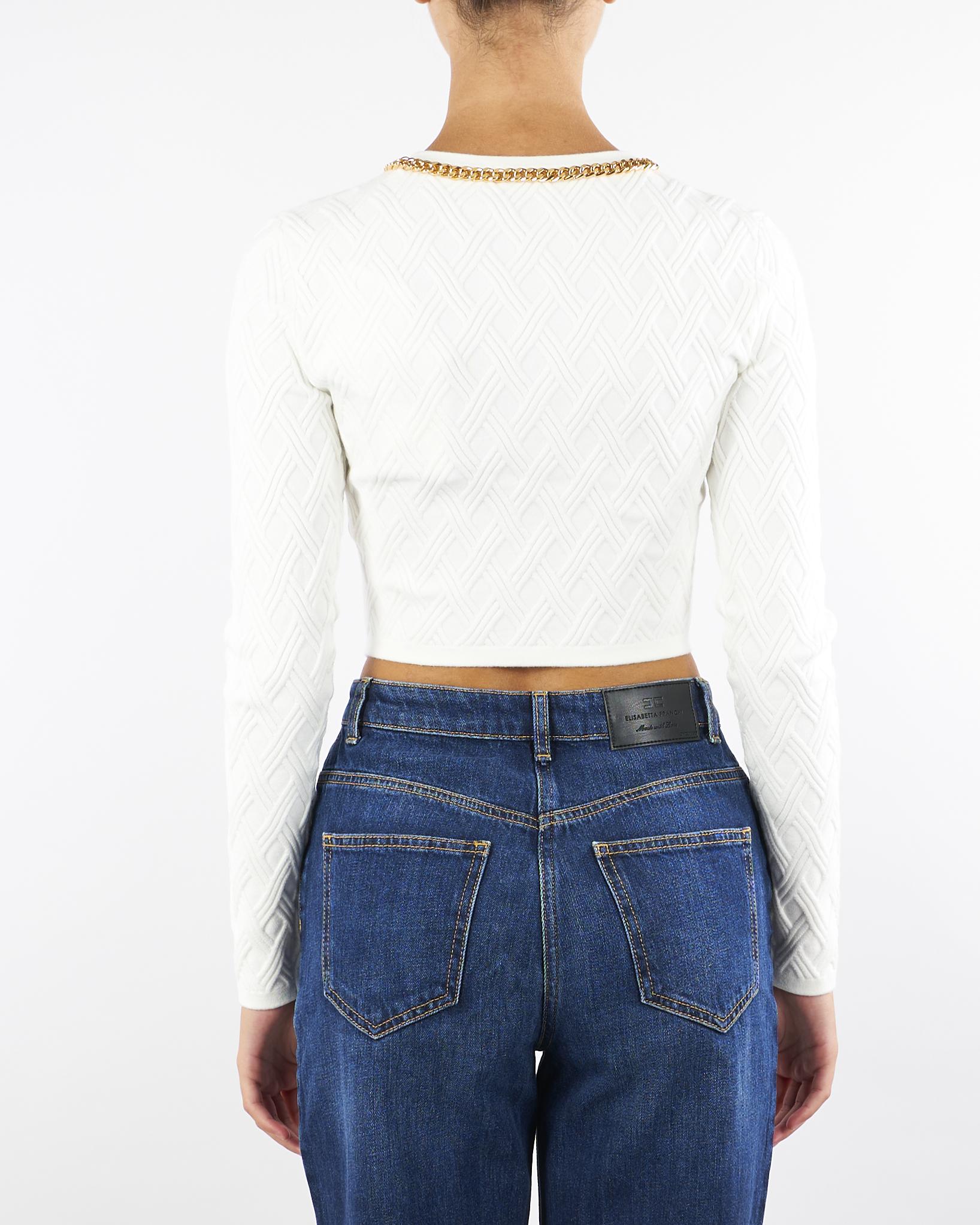 Cardigan Avorio in maglia a rombi con dettaglio gioiello
