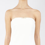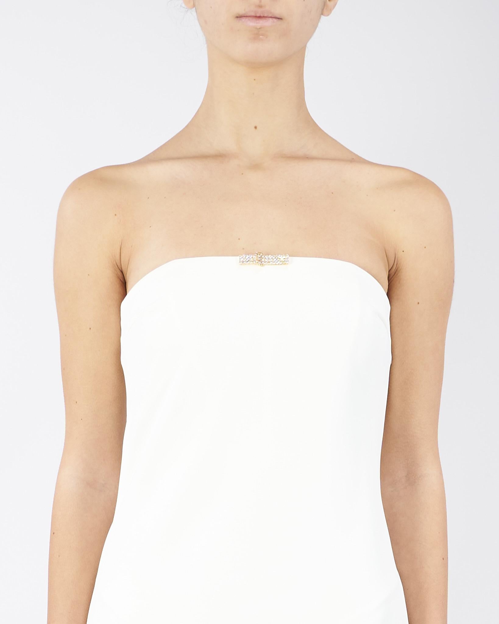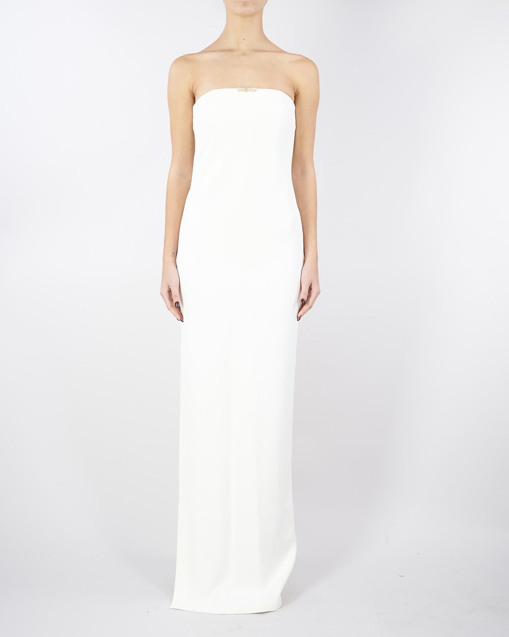 Abito Red Carpet Avorio in doppio crêpe leggero con dettaglio gioiello