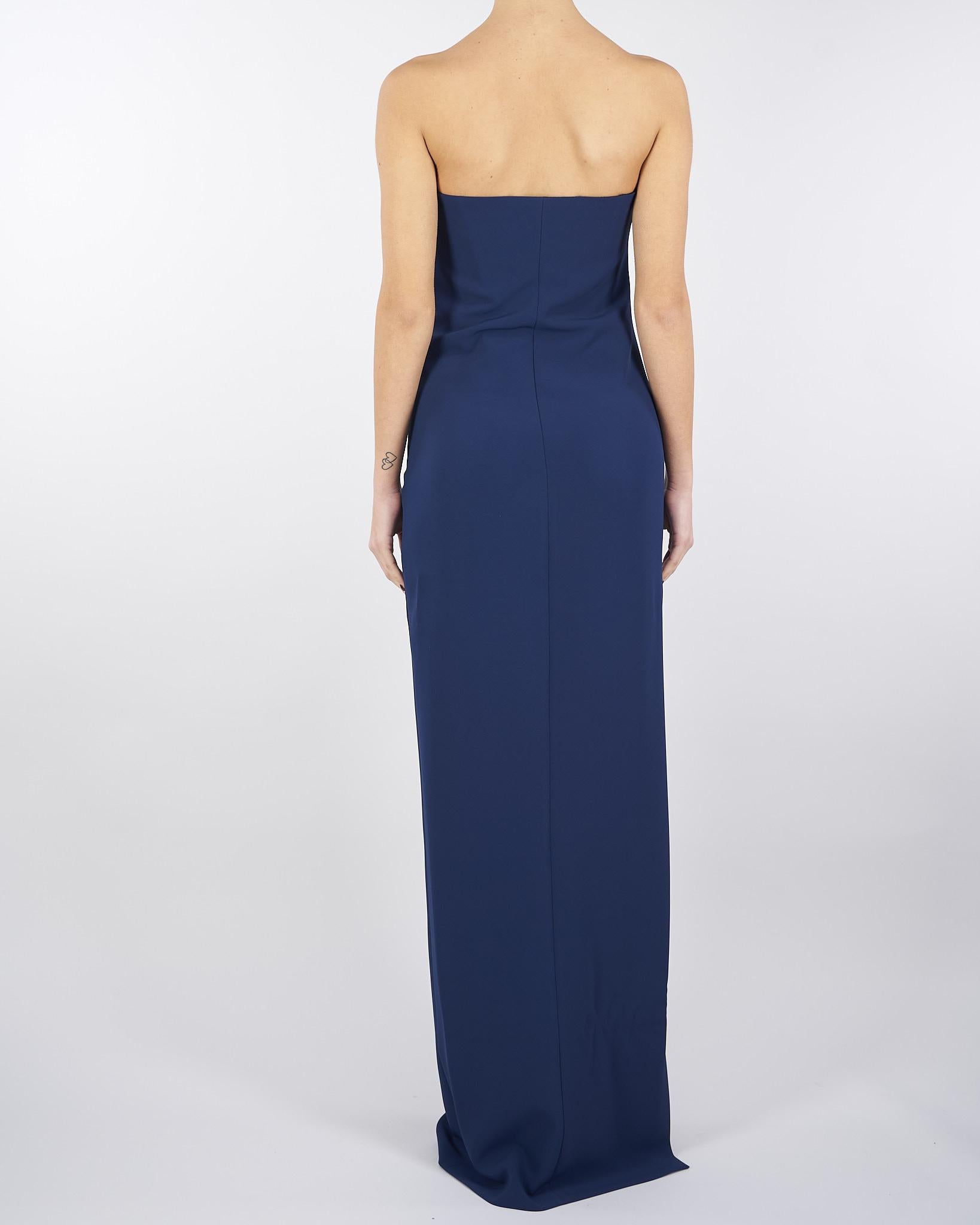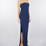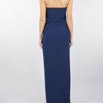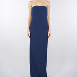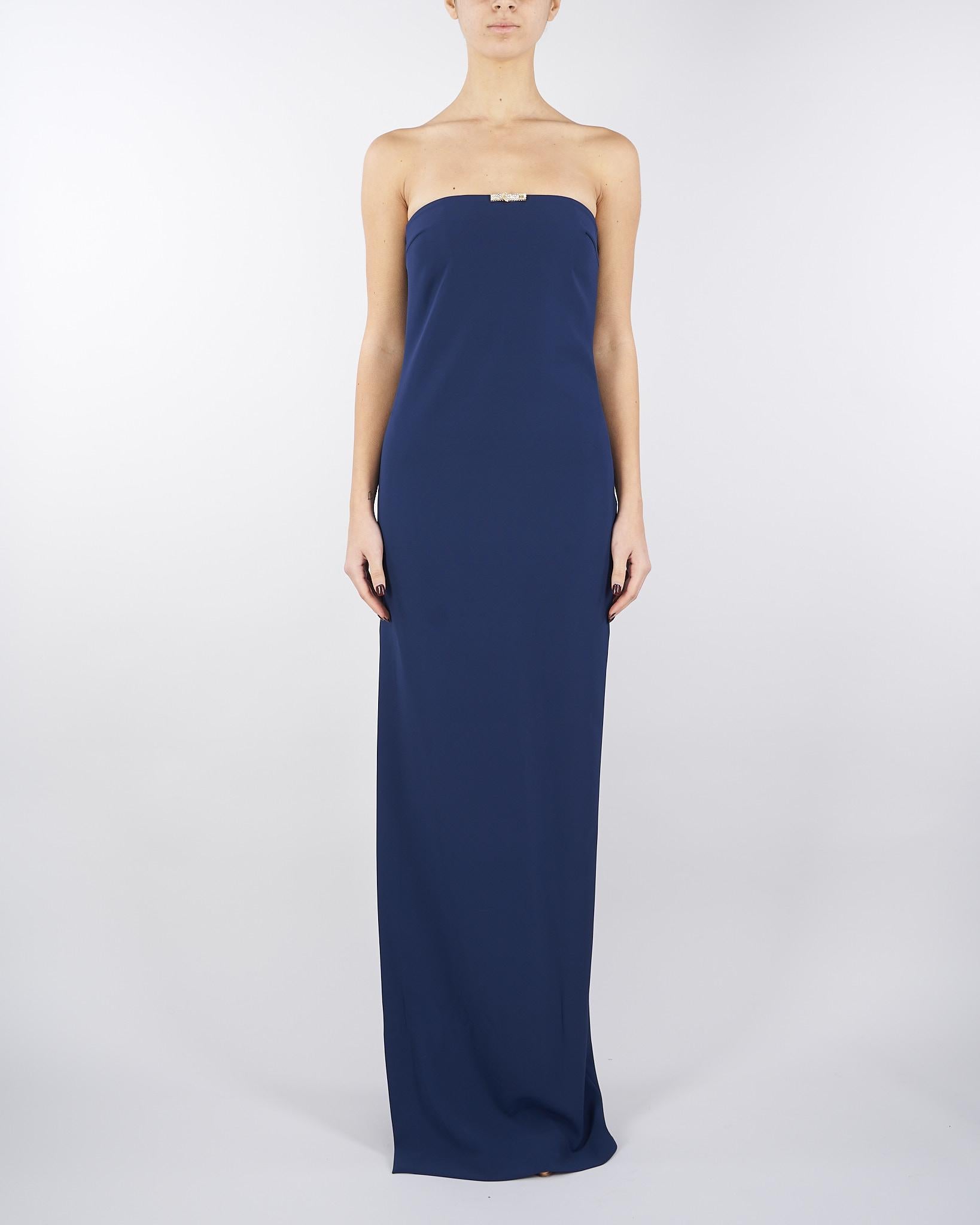 Abito Red Carpet Oltremare in doppio crêpe leggero con dettaglio gioiello