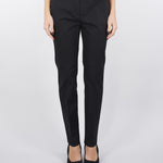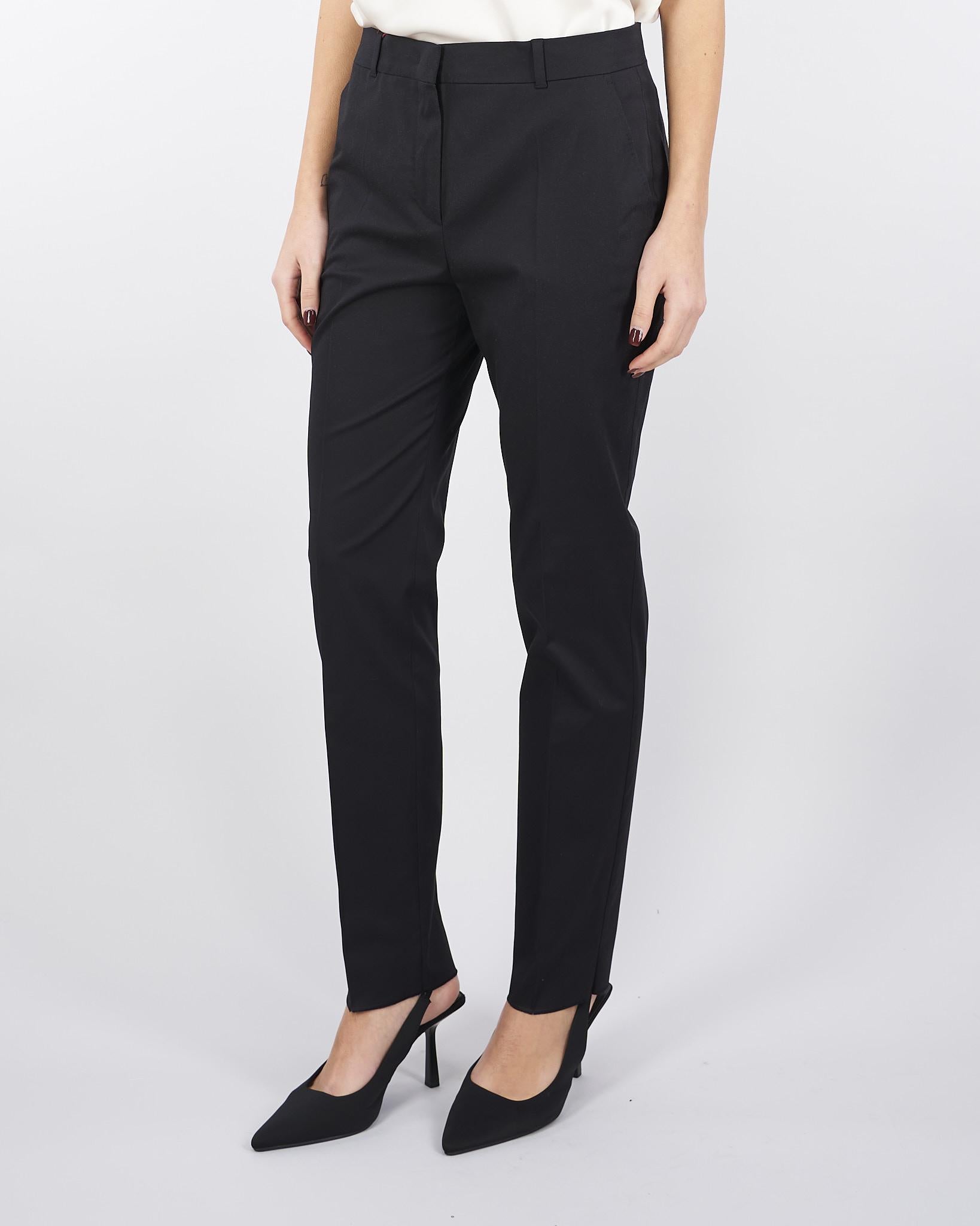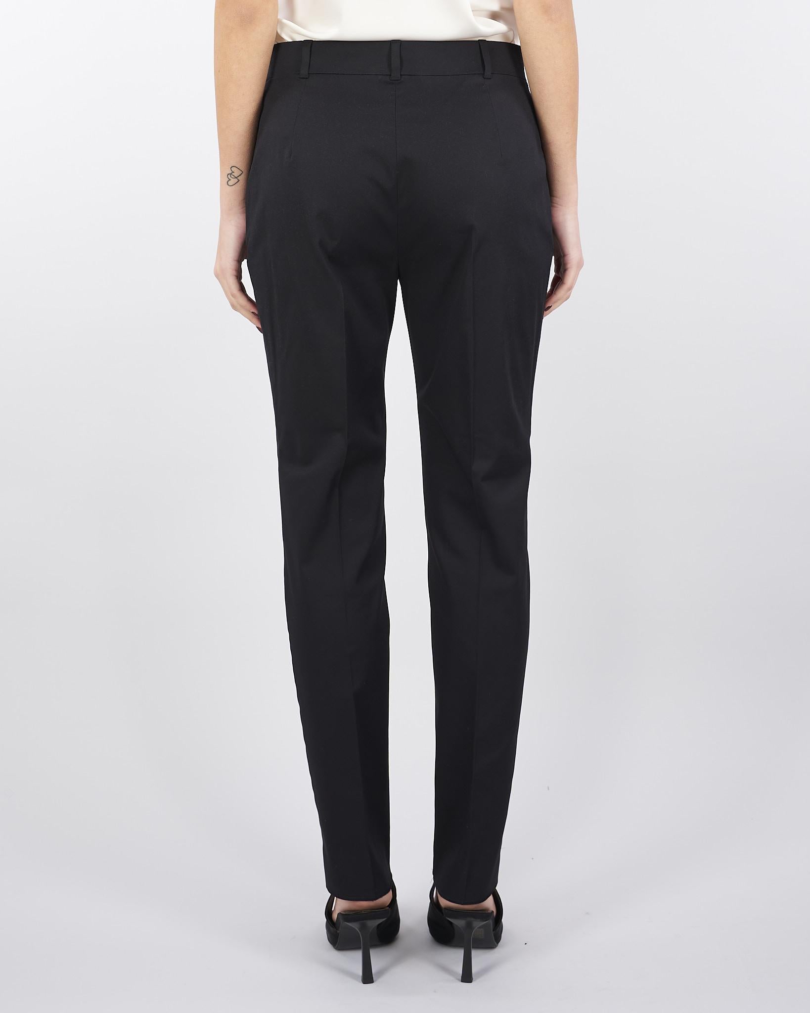 Pantalone a sigaretta, realizzato in morbida gabardina di cotone stretch. Il modello è completato da tasche alla francese sui fianchi, piega stirata e passanti in vita. Chiusura con listino alto in vita, zip con patta e gancetto.