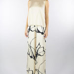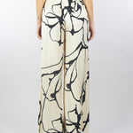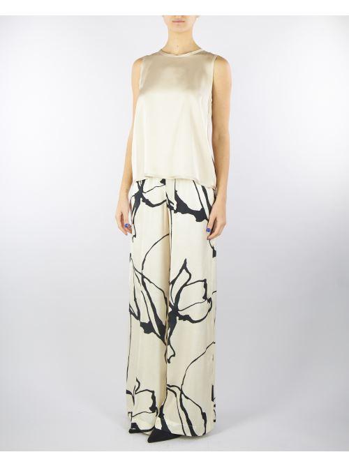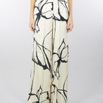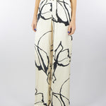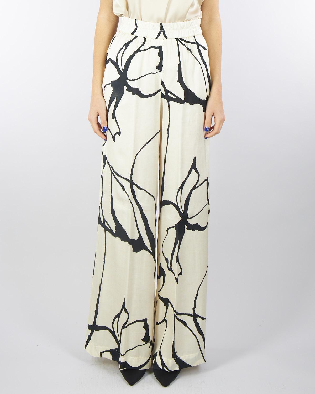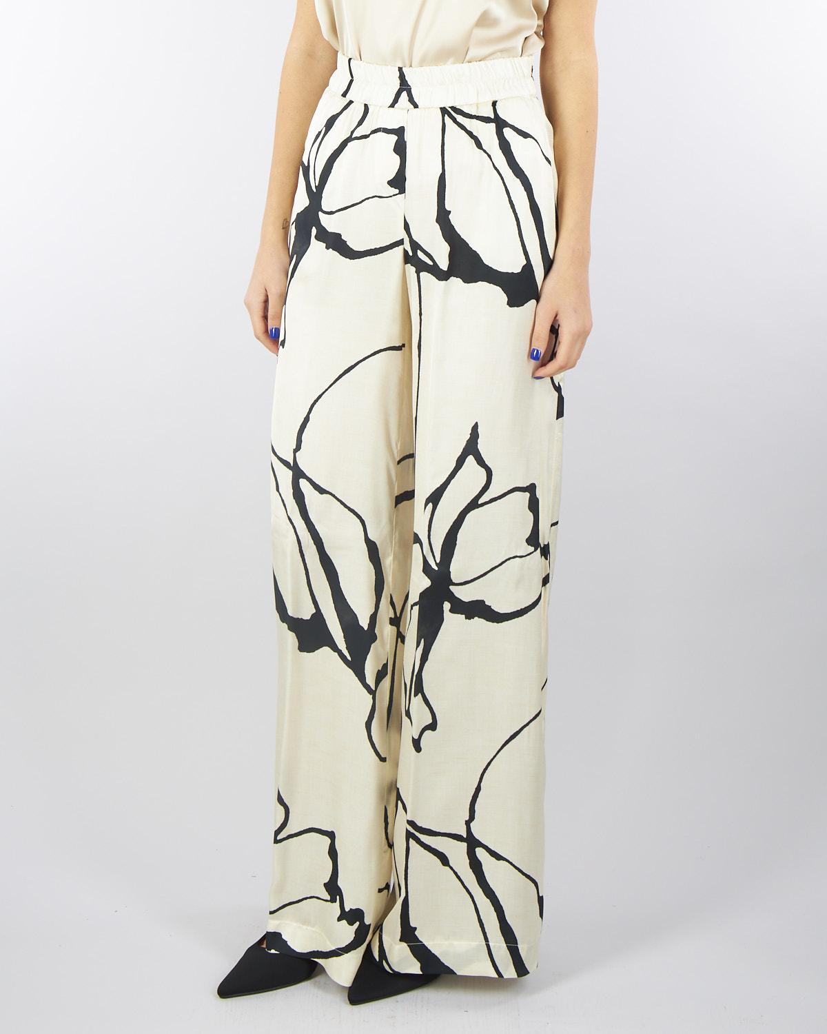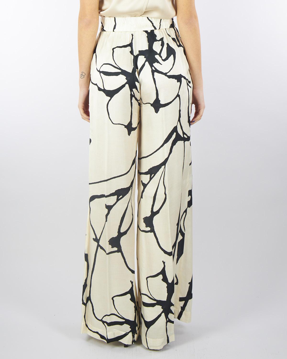 Pantalone a fantasia Crema-Nero in viscosa con elastico in vita