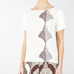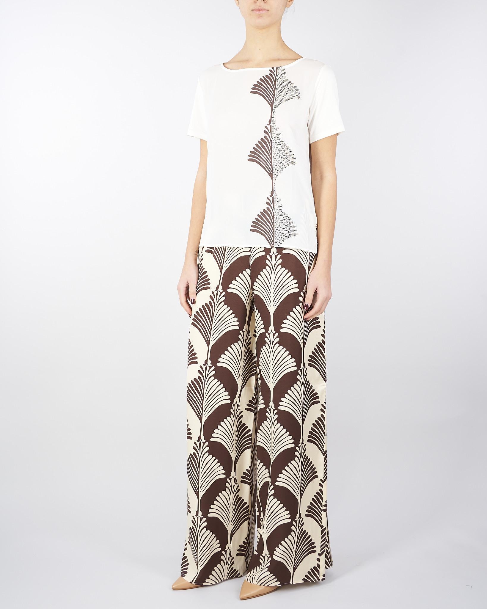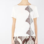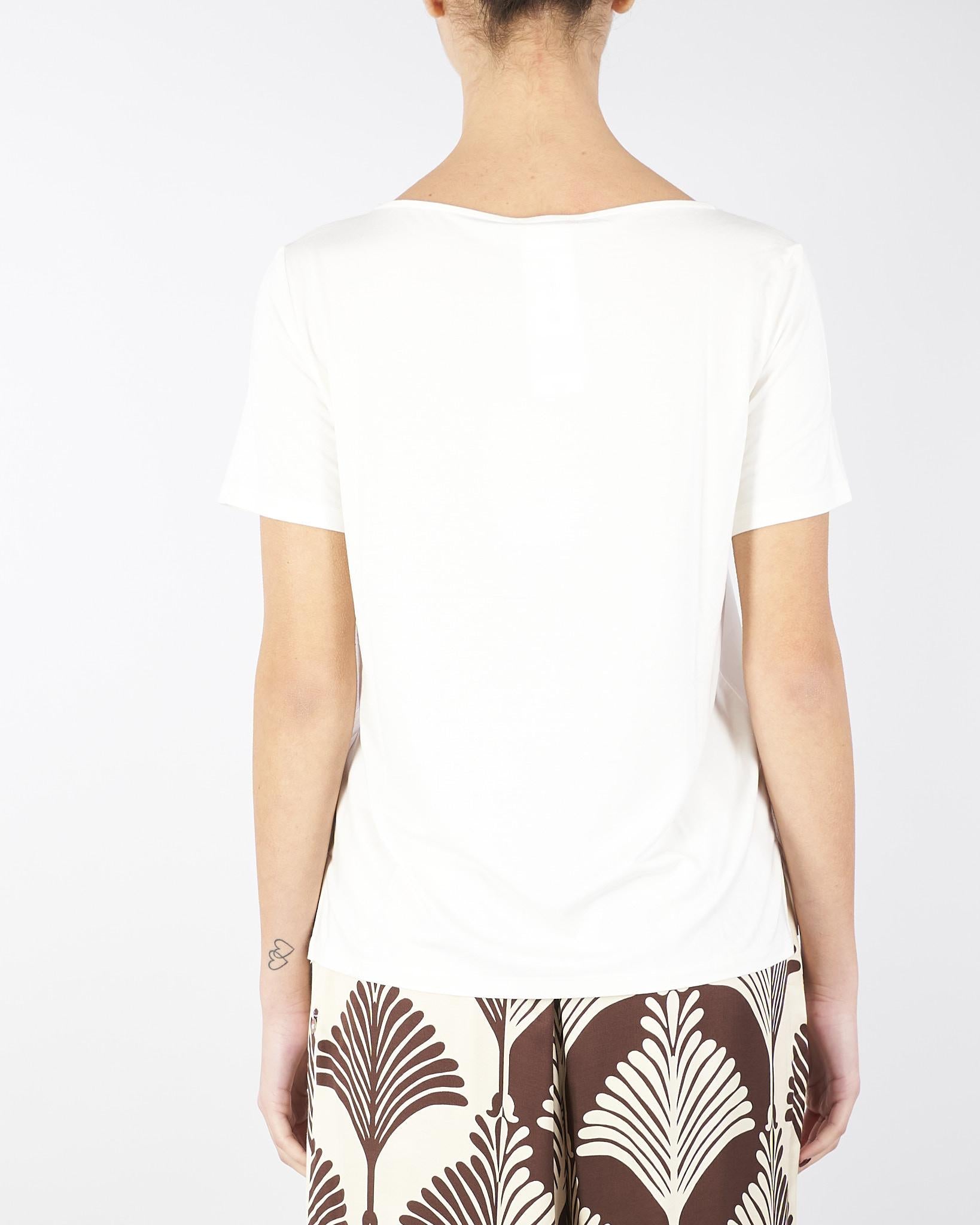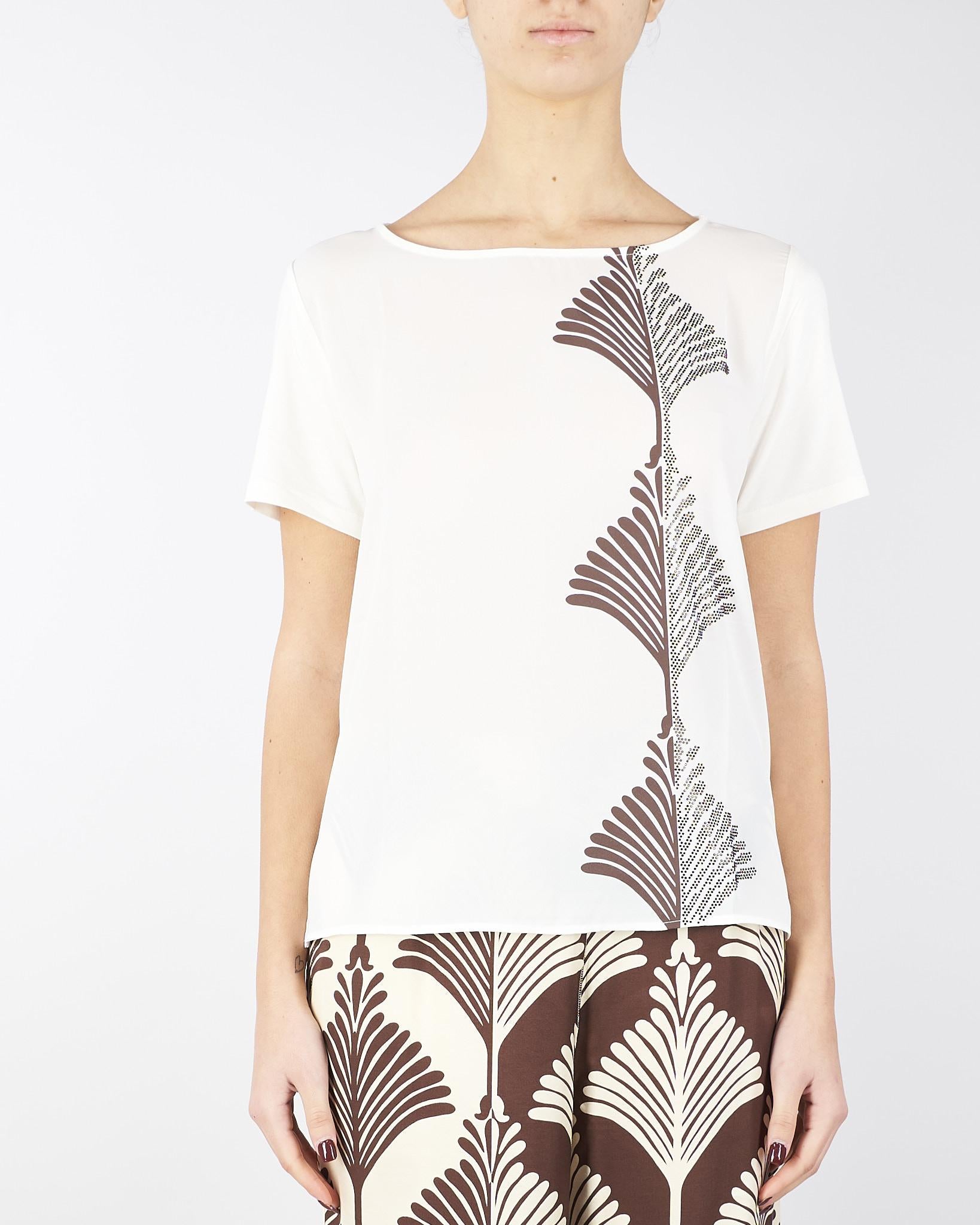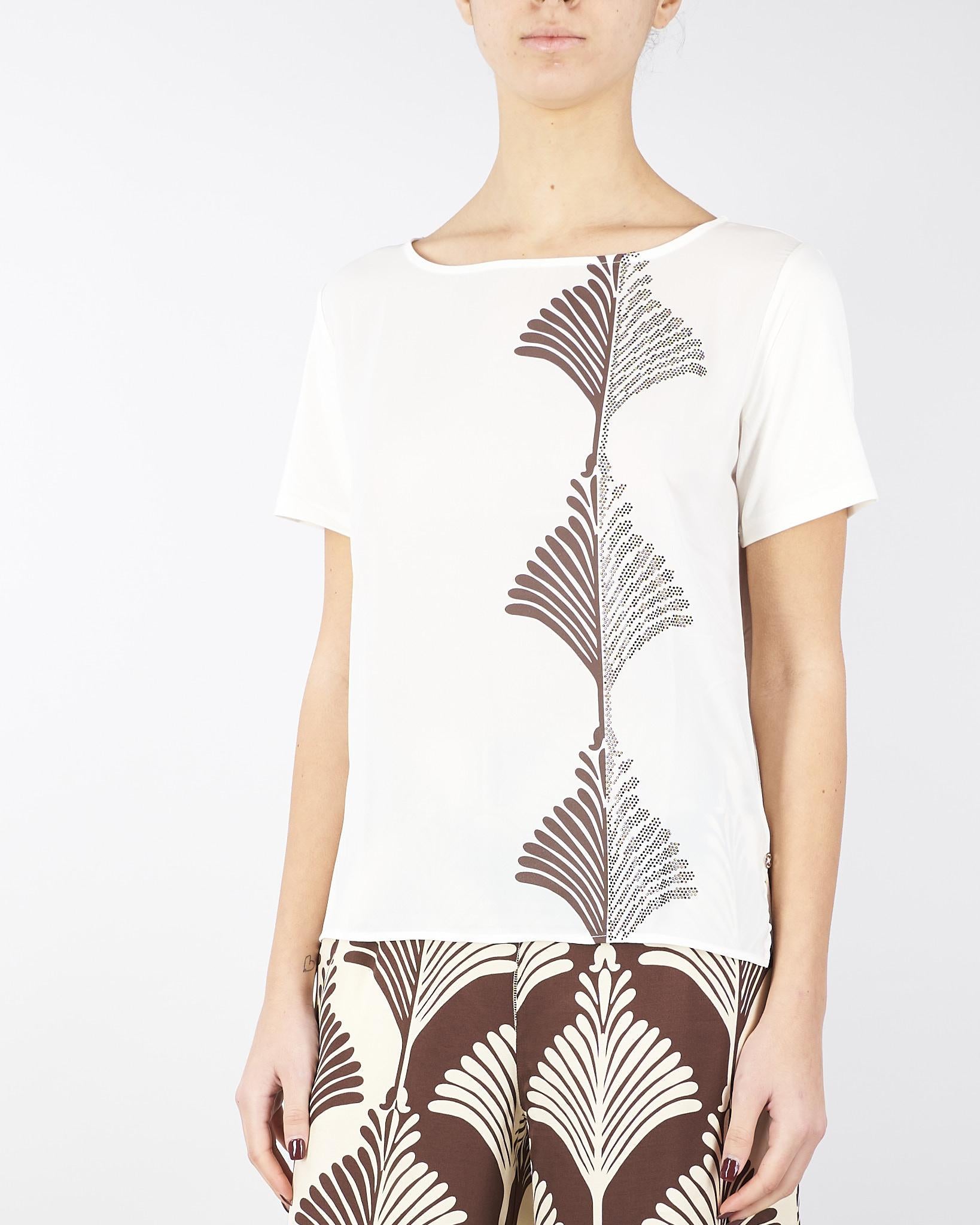 Con stampe arricchite da punti luce sul davanti in crêpe de Chine, la T-shirt in jersey fluido darà un tocco in più agli outfit quotidiani. Jersey di viscosa stretch. Parte davanti in crêpe de Chine con stampa e micro-strass. Linee diritte e morbide. Scollo a barchetta arrotondato, maniche corte. Spacchetti laterali al fondo.