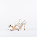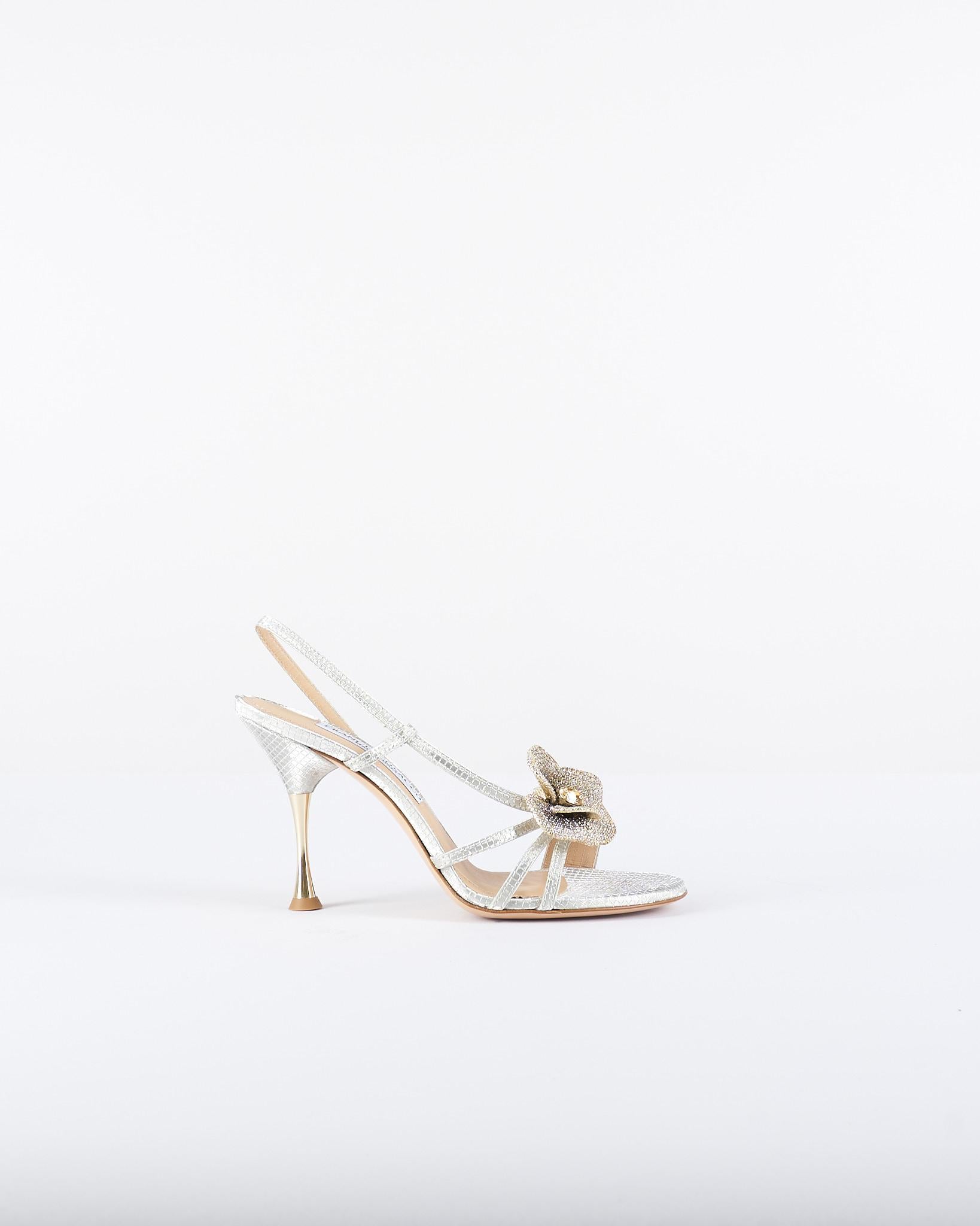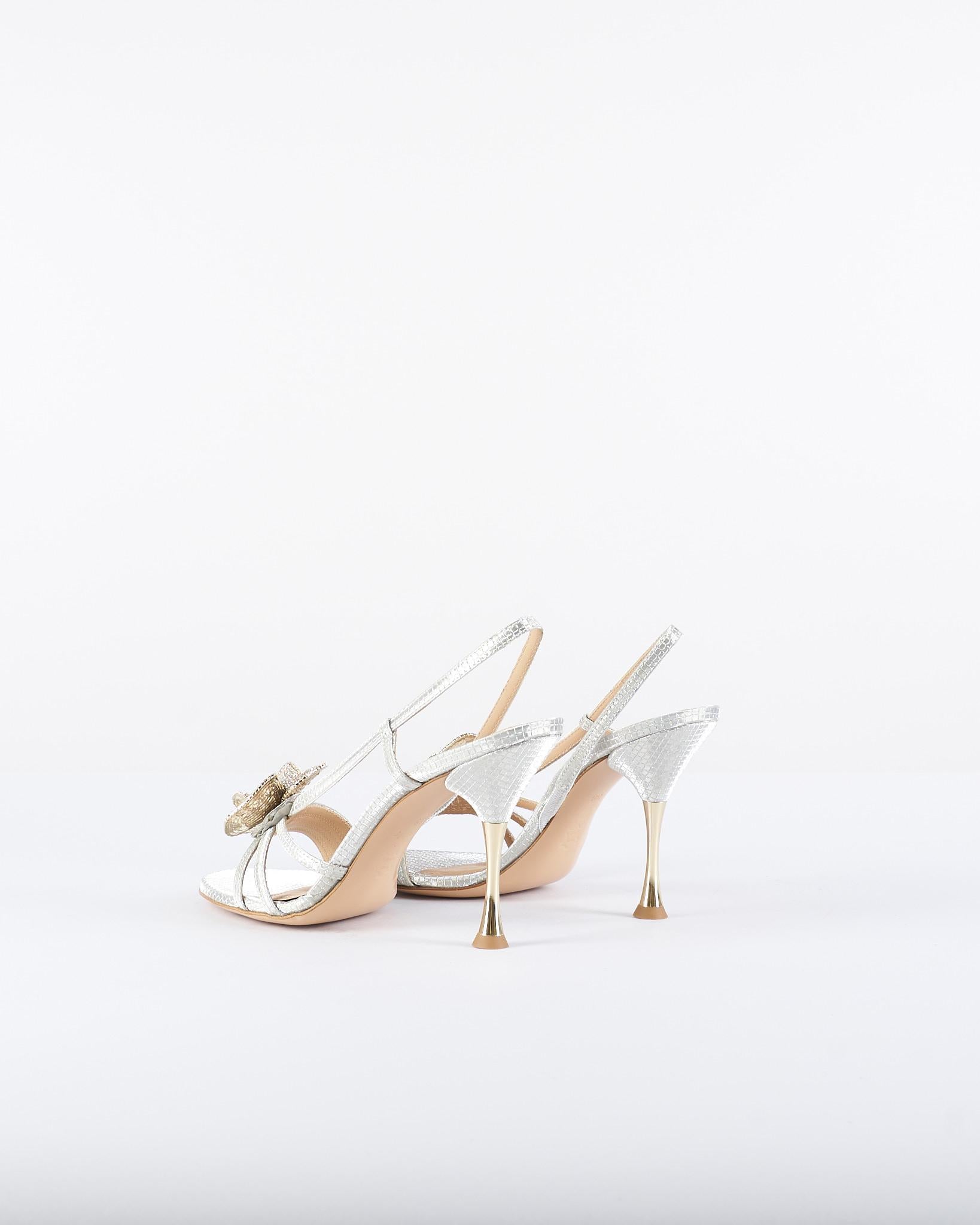 Sandali Argento di Francesco Sacco. Modello con punta rotonda e dettaglio accessorio sul davanti. Cinturino alla caviglia con fibbia. Tacco sottile gold. Soletta intrena logata.