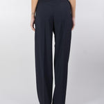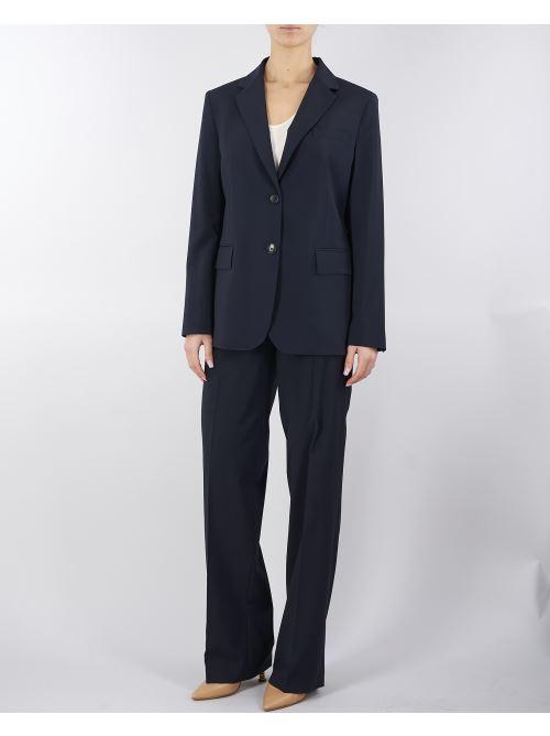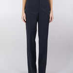 Pantalone lungo a gamba dritta a taglio d'ispirazione maschile in fresco di lana stretch. Mid rise. Tasche laterali davanti e tasche a filetto posteriori. Chiusura frontale con zip e gancetti.